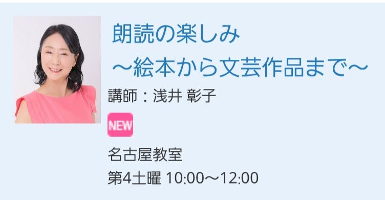 2025年10月から名古屋栄にありますNHK文化センター名古屋教室にて朗読講座「朗読の楽しみ~絵本から文芸作品まで」が始まります。